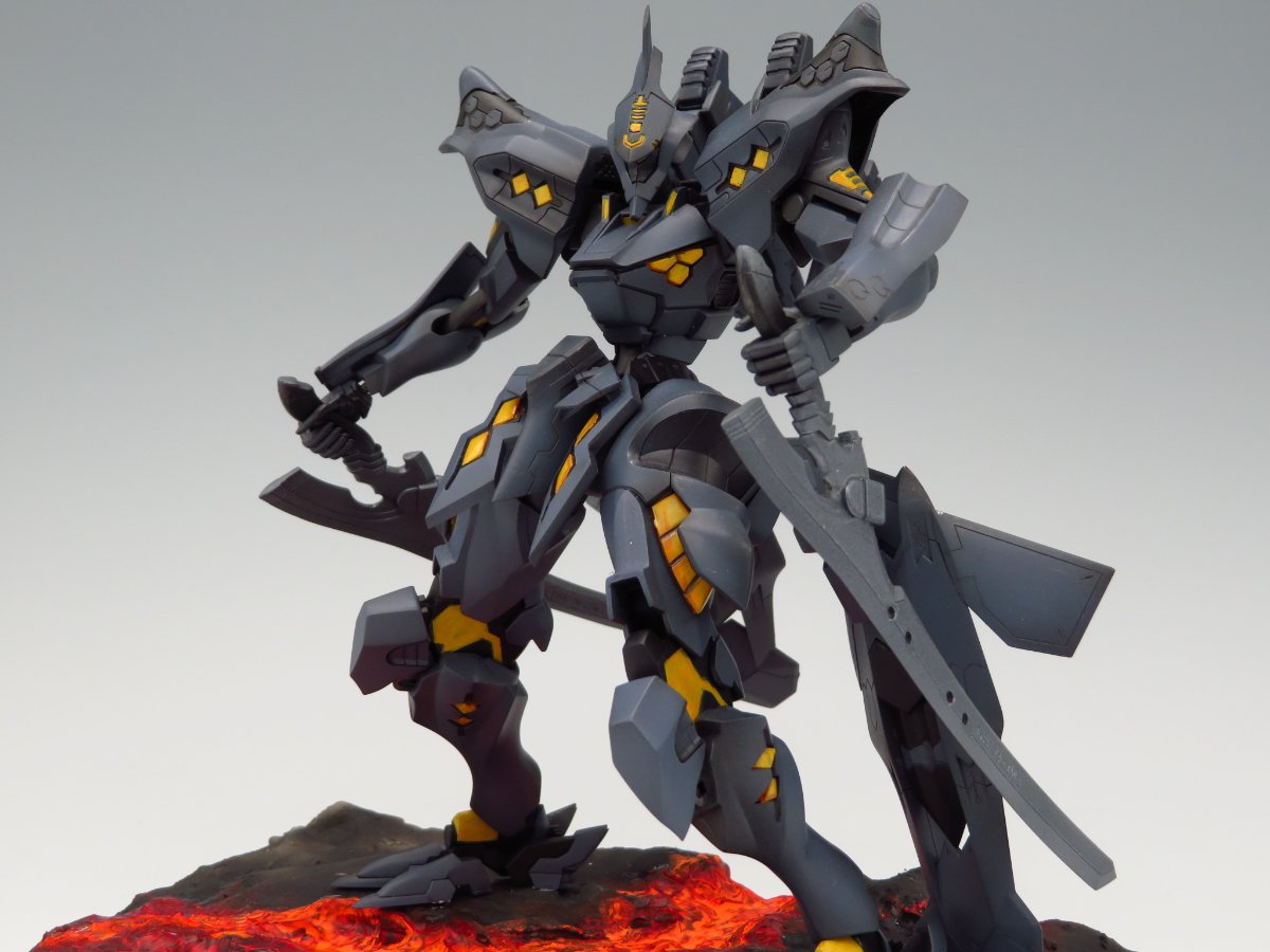 スタッフコメント:前回のペイントコンテストに引き続き今回も戦術機でのエントリーありがとうございます!作品はジオラマ仕立てで足元に流れる溶岩の色がとてもリアルで見ているだけで熱さが伝わってきますね!機体のカラーリングもグレー系がベースとなっていますが、その色とは異なる灰色系で少し煤けた感じにウェザリングをされているので、台座に合わせて違和感なく作品を仕上げられてます!
