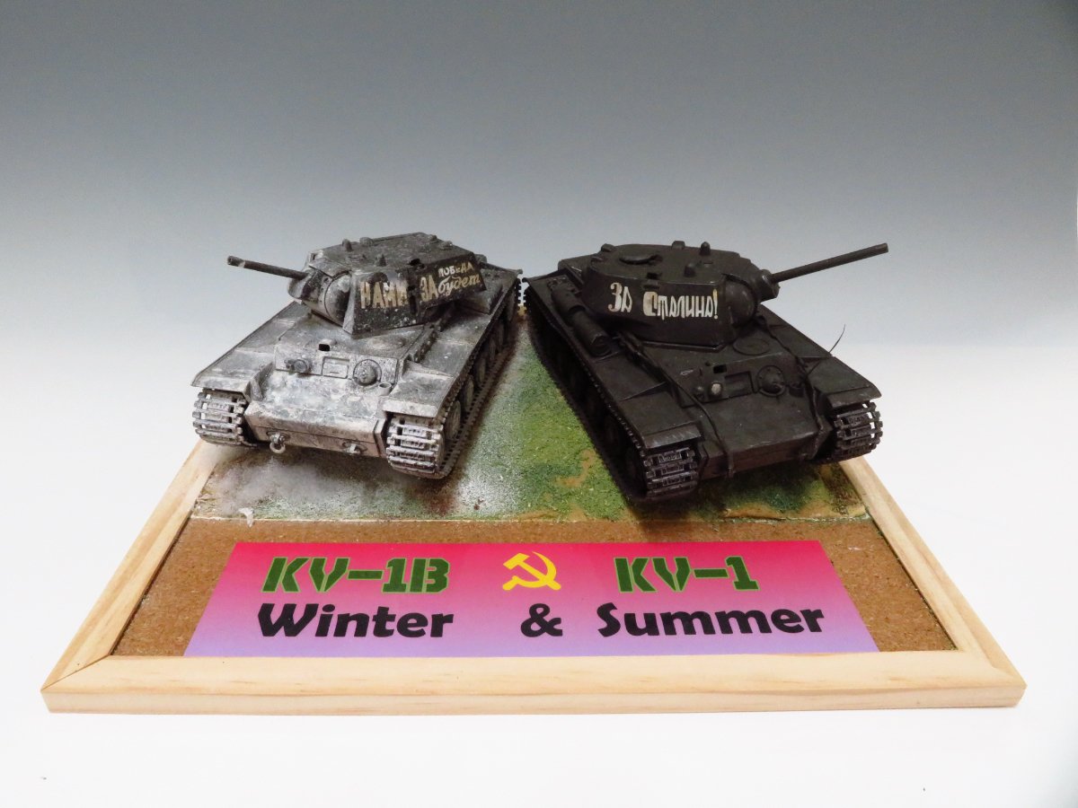 製作者様コメント:初めてのAFV作品です。KV-1シリーズを使い、一つの台座に冬と夏の戦場を表現してみました。