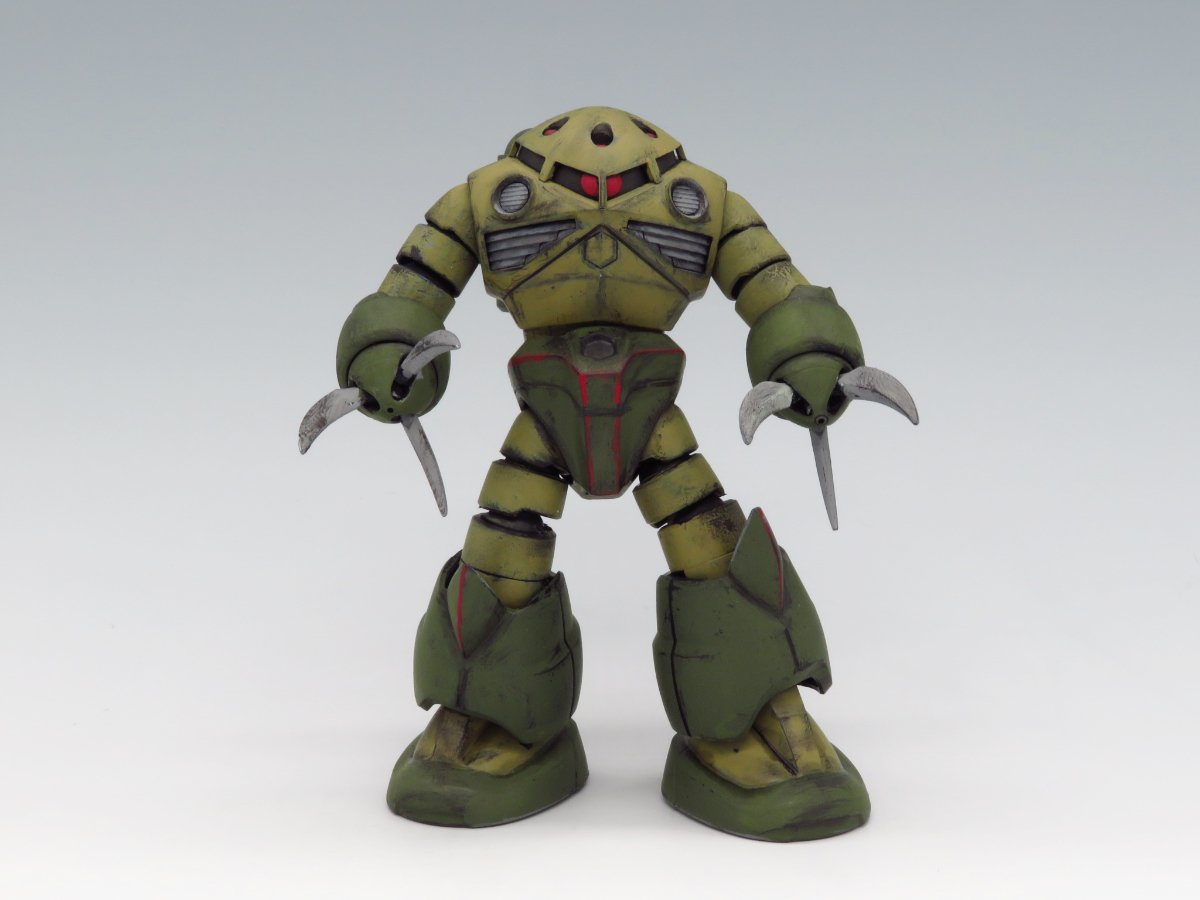 スタッフコメント:ジオンの水陸両用MSはどれも人気が高く、まるみがあるデザインはどこか可愛いさを感じますよね(私だけでしょうか?)。今回あび太郎様が塗装されたカラーリングは密林地帯での戦闘をイメージされた様なミリタリーな配色がとても渋くてカッコイイ!全体的に入っているウェザリングも汚れが溜まりやすい溝やダクト周りなどを中心にされているため、工業用の重機みたいな使われるほど汚れていくあの何とも言えない感じが出ていて凄く好きです!