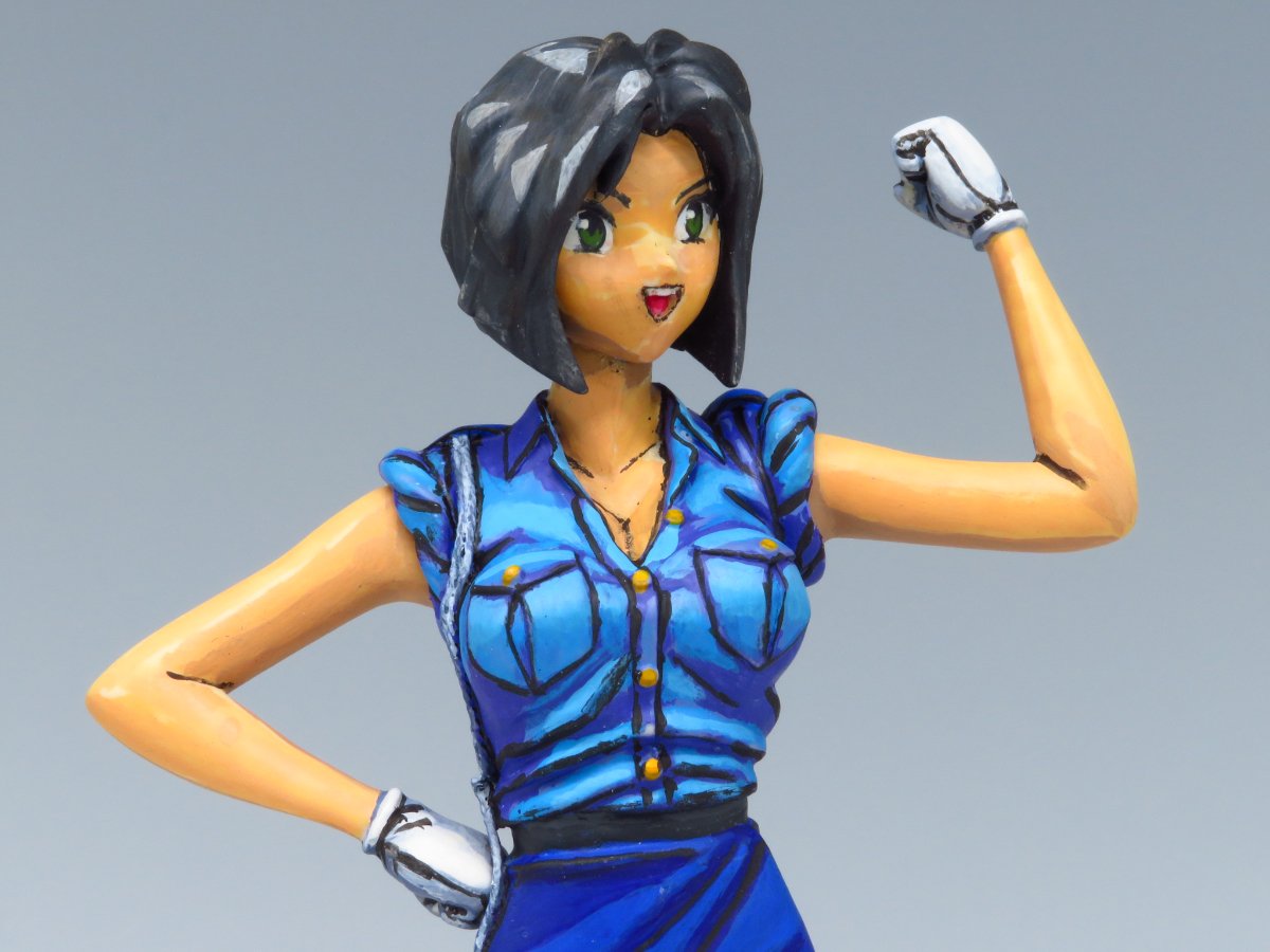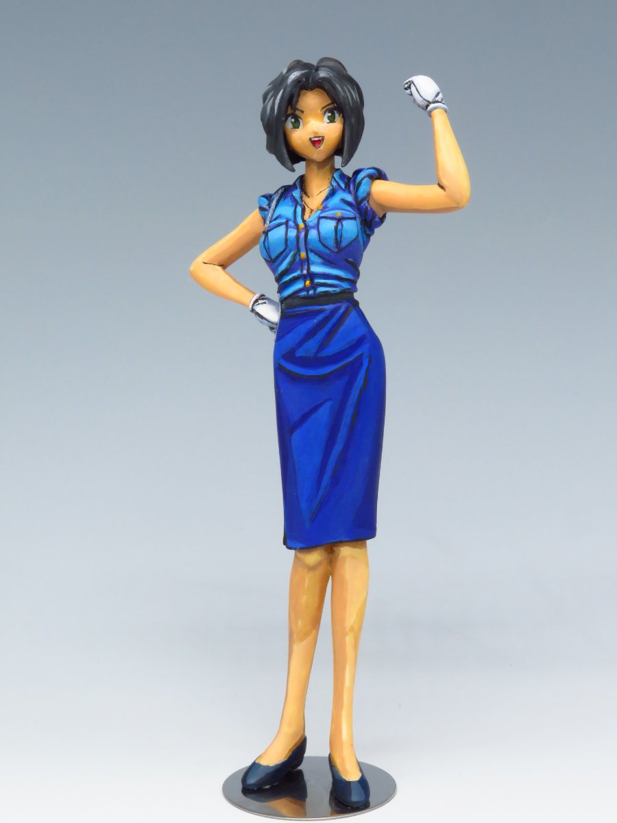 スタッフコメント:全体的に塗装箇所を見ると同系の色を3色使用しイラストの様に塗装されています。特に制服部分がわかりやすく、濃い青色、中間の青色、薄い青色と陰影部分で使い分けていますね!