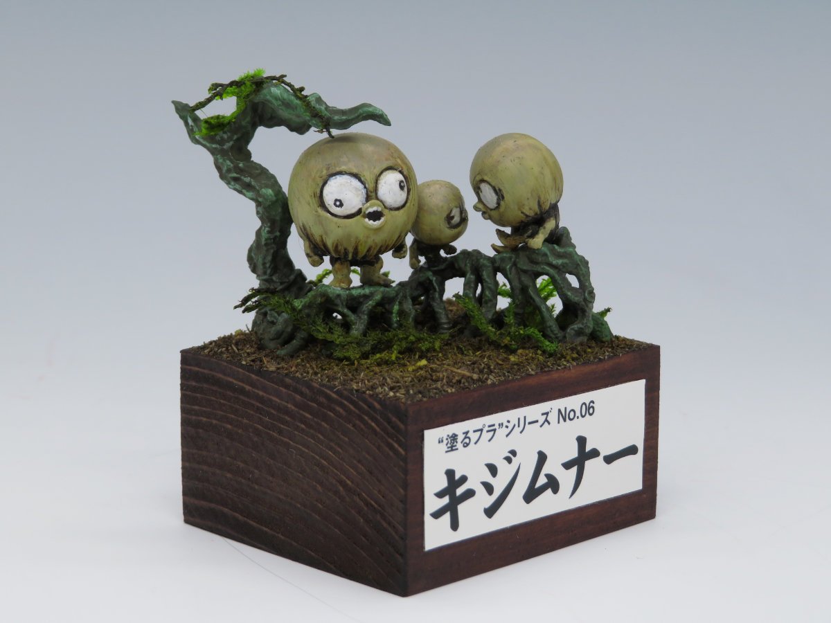 スタッフコメント:塗るプラ「鬼太郎」シリーズより樹木の精霊「キジムナー」でのご参加です!ありがとうございます!筆跡を活かした毛並みが素朴で愛らしいキジムナーに、グラスなどの素材を使ってビネット風に作られた台座のリアルさから水木しげる先生の作風を感じます!
