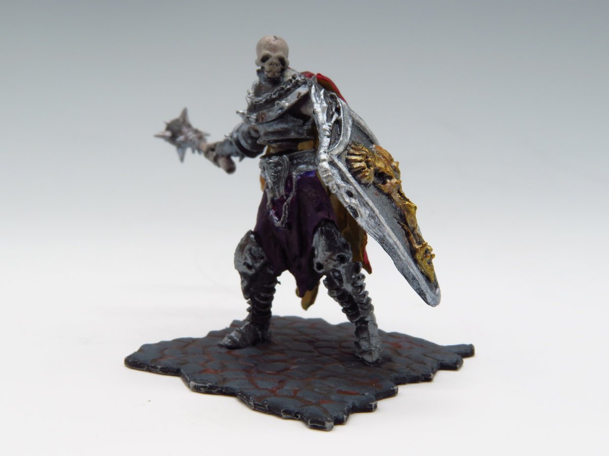 スタッフコメント:戦士の亡霊が現世を彷徨っているかの様な「ゼロテ」社のスケルトンチャンピオンを塗装していただきました!鎧はギラギラとシルバーに輝きつつも劣化により錆びている部分や黒くくすんでいたり、マントなど布の部分の褪色した感じが塗装で伝わってきました!盾のスカルホーンマークも金色の他に何色か塗り重ねていますので、アンテークな雰囲気がありますね!