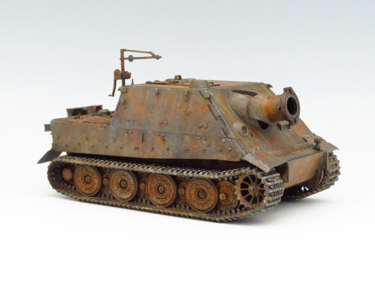 スタッフコメント:質感、配色共にとてつもない完成度です!金属に浮いた赤錆の色は様々な赤茶が使用され、その部位だからこそ付く錆色が再現されています!所どころほんの少しオイリーな雰囲気が付いていたり、錆の剥げたキャタピラの銀も含め、色に対するこだわり満載の作品です♪