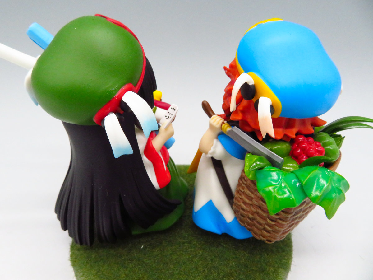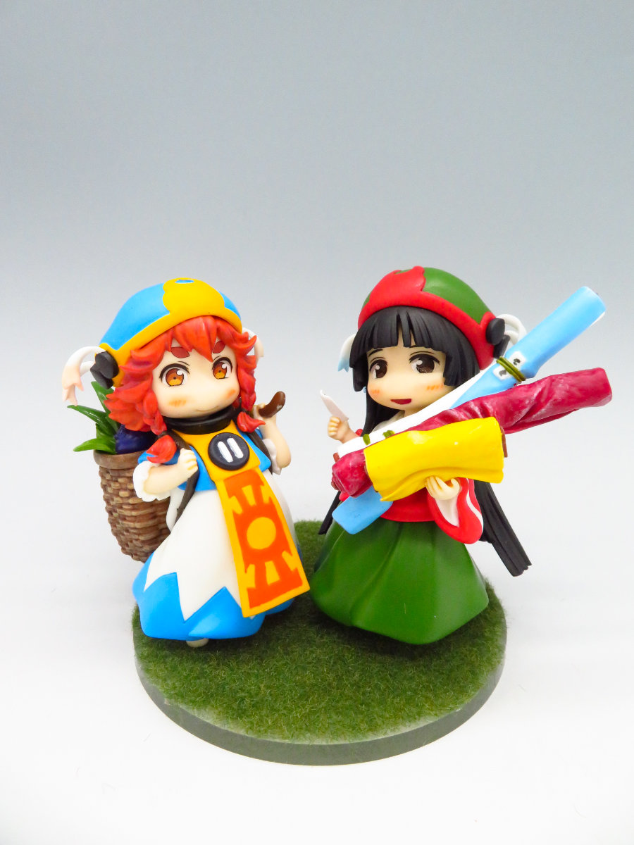 スタッフコメント:初めてのキャラグミン作品をお持ち込みいただきました!ふんわりとした二人の表情付けがとってもかわいいです! 背負い籠と中の野菜や、何種類もの布生地の質感の塗り分けが素晴らしく、後ろからみるとミコチさんの手のメモまで描き込まれていますね♪