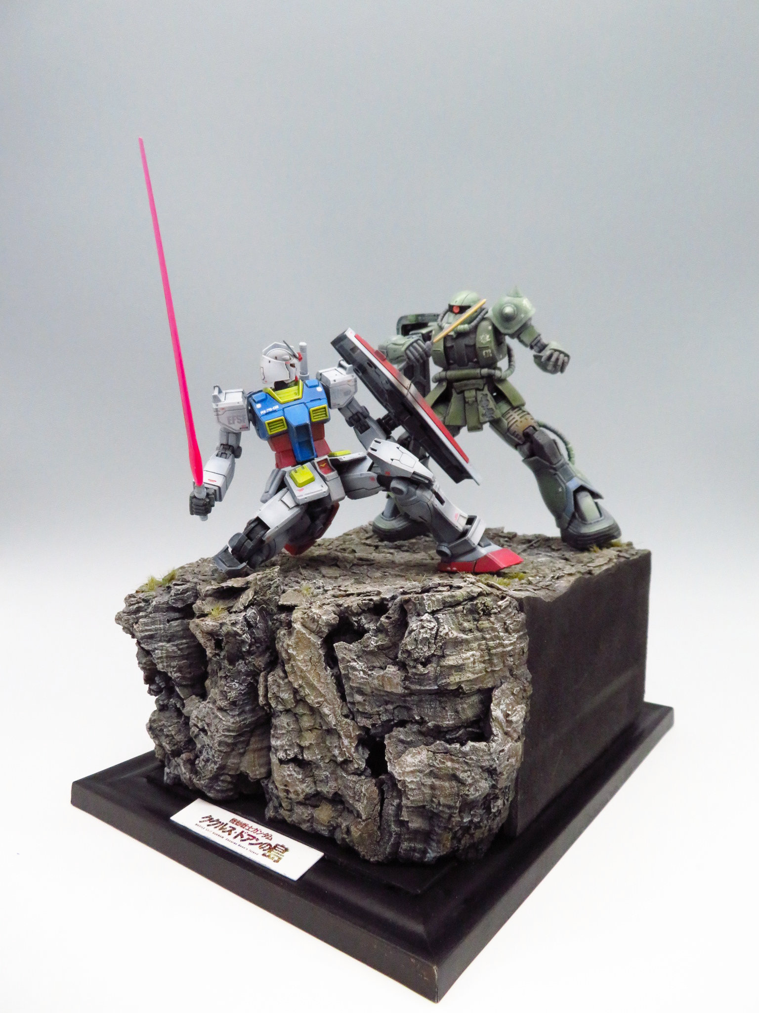 製作者様コメント:映画ククルスドアンの島でのアムロとドアンの闘いの再現してみました。岸壁はコルク樹皮を使っています。