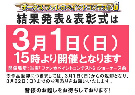 3月1日(日)15時より「ファレホペイントコンテスト6」結果発表&表彰式開催 !