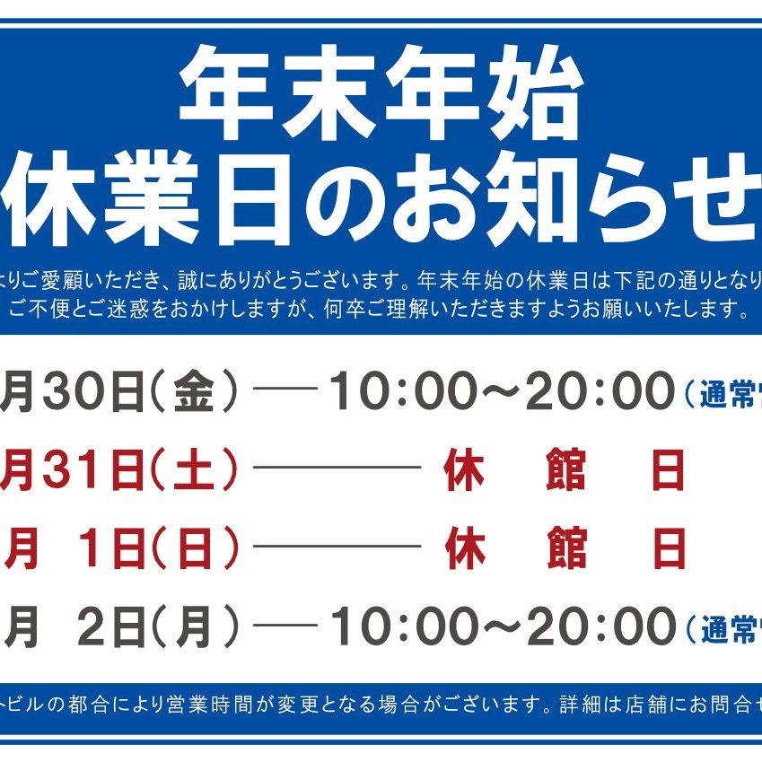年末年始の営業時間のお知らせになります。