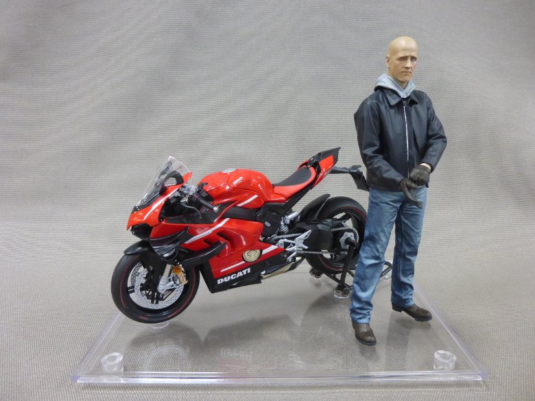 光沢が美しいドゥガティの作り込みもさることながら、隣に並ぶストリートライダーのリアリティ溢れる質感表現はショーケース内でもひと際存在感を放っておりました!