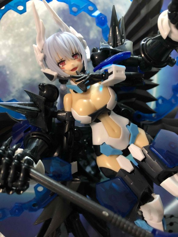翼や光輪などの天使らしいシルエットを残しつつも、黒とクリアブルーのパーツで構成することで堕天使らしいダークな雰囲気に仕上がっております!
