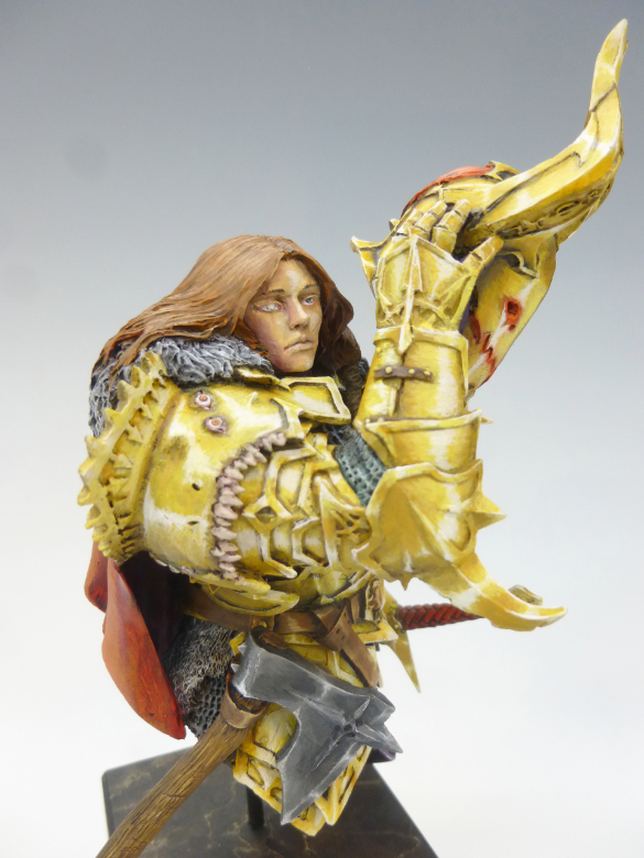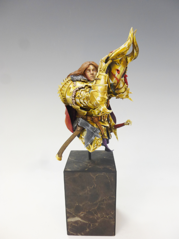 ワールドミニズ PFワークス社『ユルサ・グリム(胸像)』がノンメタリックメタル塗装による黄金の鎧を纏ってエントリーです!