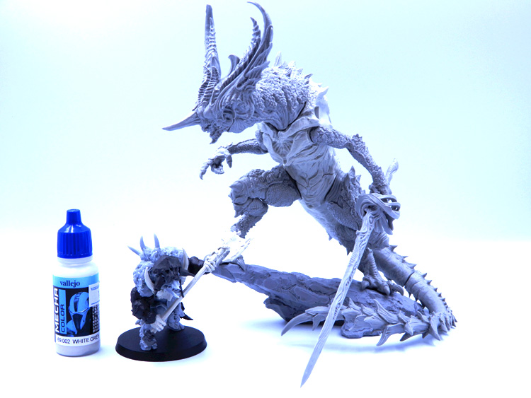 因みに組み立てた全高は約20センチ!横にもカサがあるので体感的ボリュームはそれ以上な感じですね。横にあるゼロテ社のミノタウロスとファレホカラーとサイズを較べてみてください!!