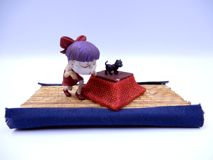 畳を作り、古い家の様子を表現してみました。猫は家にいるお転婆な黒猫です。