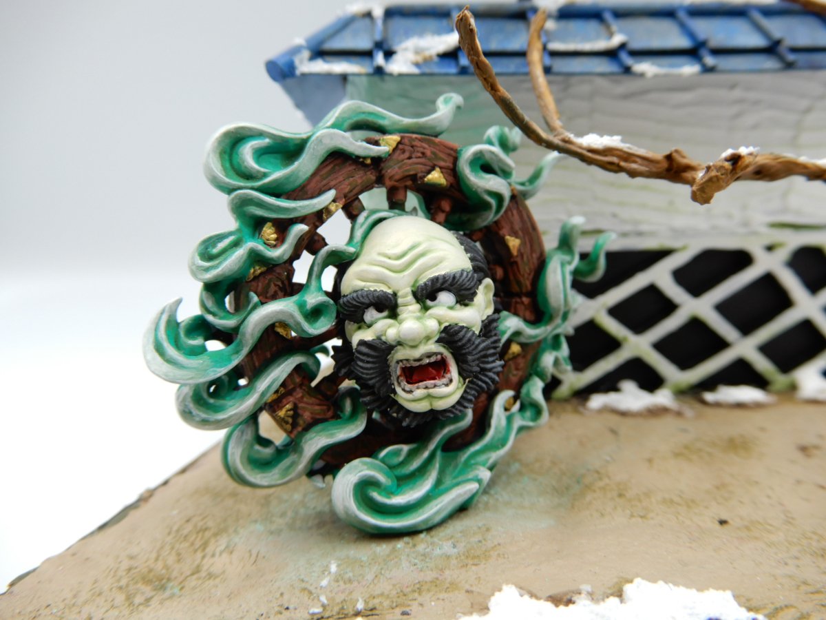コメントにある通り、輪入道をグリーンで塗装する斬新さと、それによって妖怪らしい不気味さを演出させる巧みさ。
