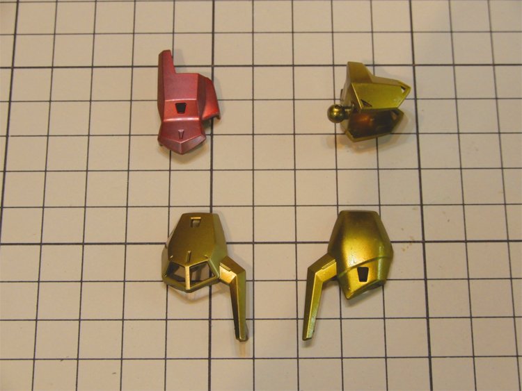 こちらは5枚目がMMPのラインナップにあるゴールドを使用した塗装例。画像左から黒のグロス下地を作って吹き付けたものと、成型色のまま吹き付けたものです。