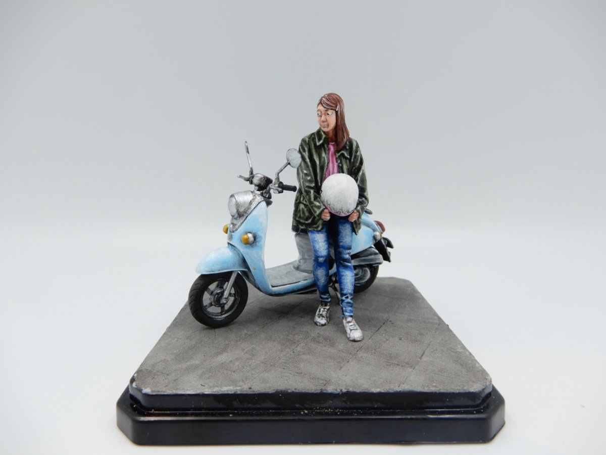 こちらも索子様の作品!ジーパンの表現やバイクの退色具合、なにより書き込みでというしわの塗装が細やかです!