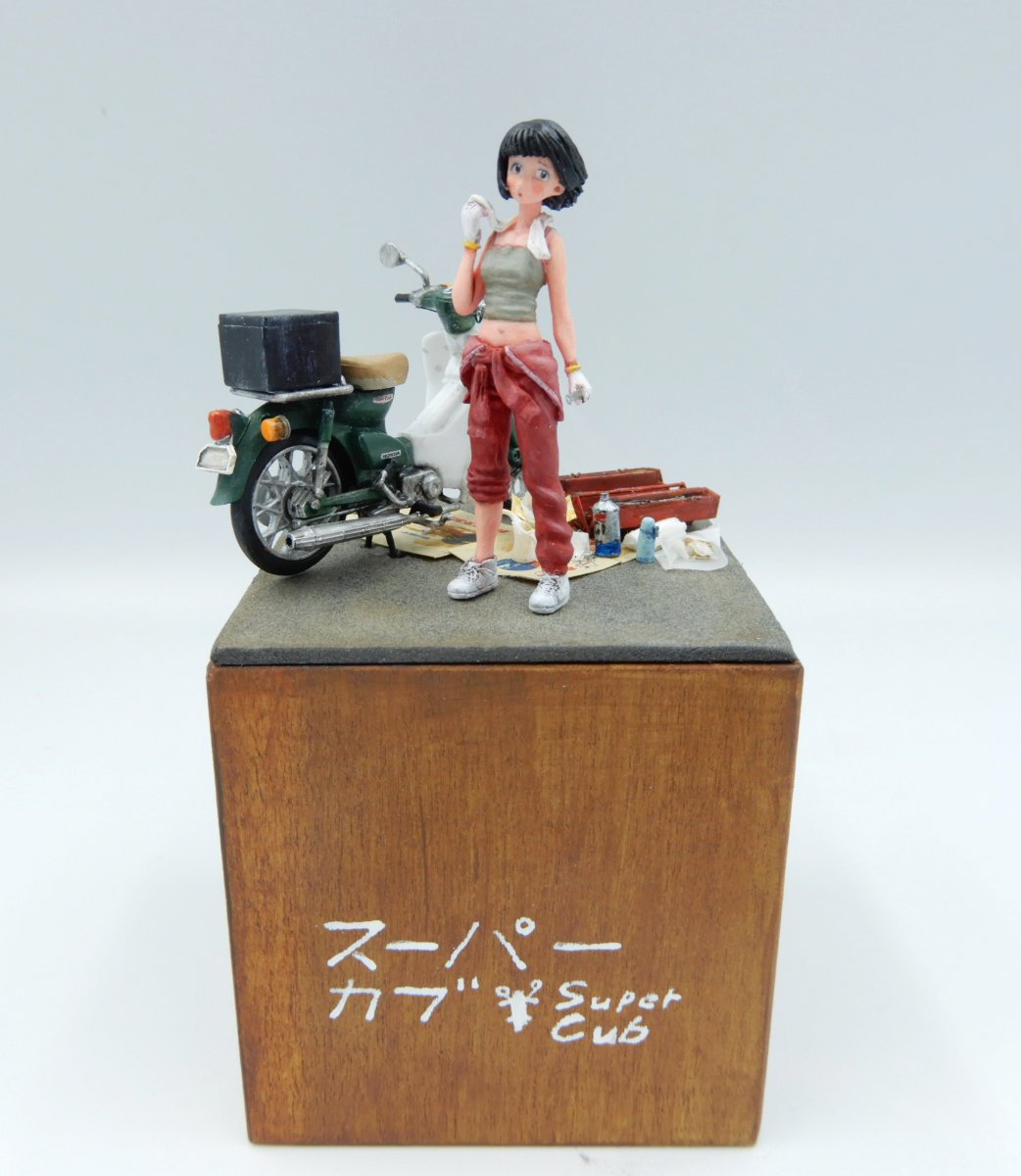 コメント:全色ファレホ筆塗り。スーパーカブ、工具箱など小物を追加して、青空整備を再現しました。