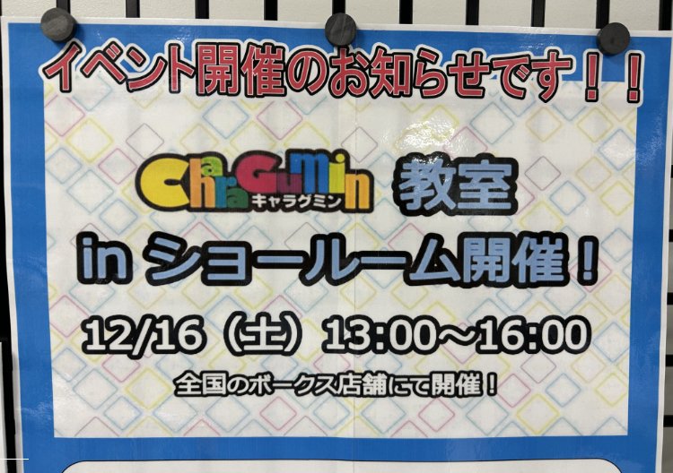 今回は来る12月16日(土)に催されるキャラグミン教室 in ショールームについてです!
