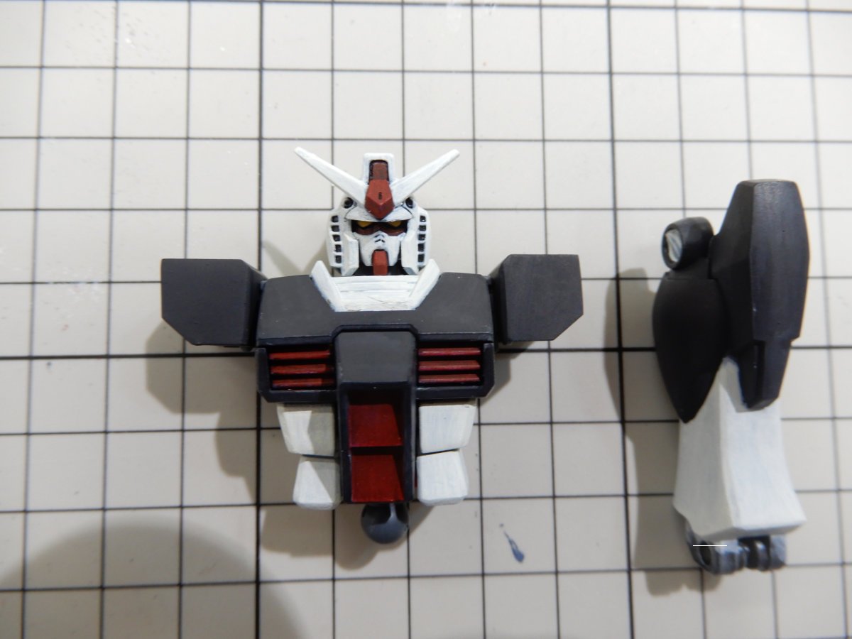 前回は「EG 1/144 RX-78ガンダム」をプロトタイプガンダムにするべく個別にパーツを改造しておりましたが、今回はそこにファレホの筆塗りで以て塗装をしていこう!ということで作業をいたしました。