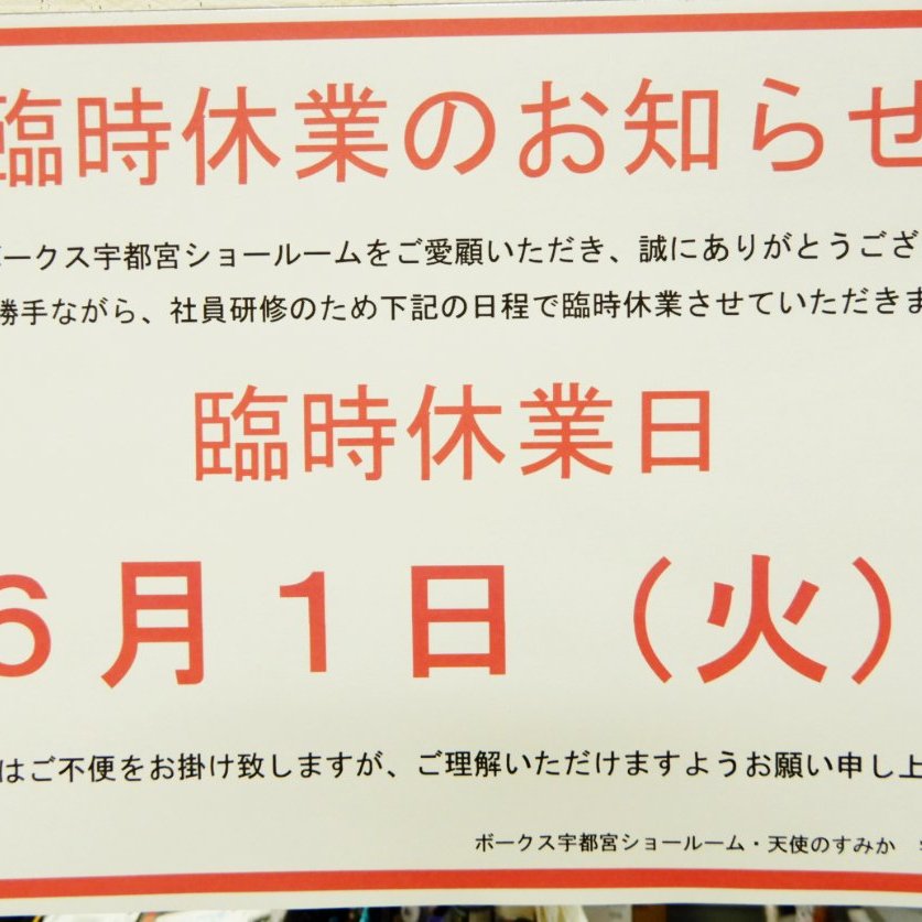 6月1日(火)宇都宮ショールーム臨時休業のお知らせ