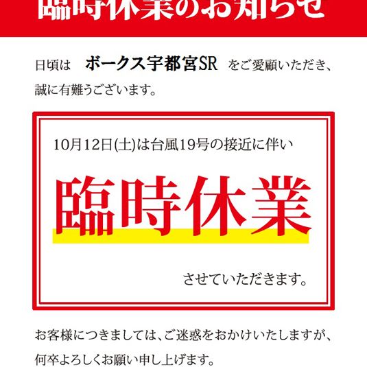ボークス宇都宮ショールーム・臨時休業のお知らせ