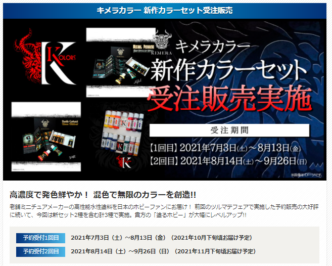 ミニチュアユーザー必見のアイテム「キメラカラー各種」の2次受注が今週末で終了!