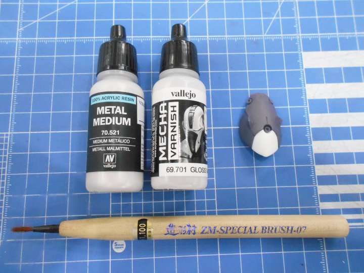成型色にグロスバーニッシュ+メタルメディウムを9:1で混ぜ合わせ、筆塗り。