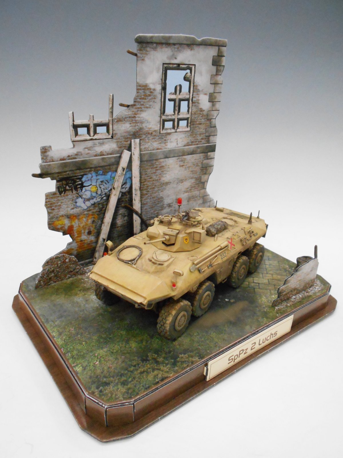 スタッフコメント:1975年に配備された西ドイツの八輪装甲車「ルクス」。地上は勿論水上走行も可能な万能装甲車!コチラを戦火の街中のジオラマ作品としてエントリーされました!