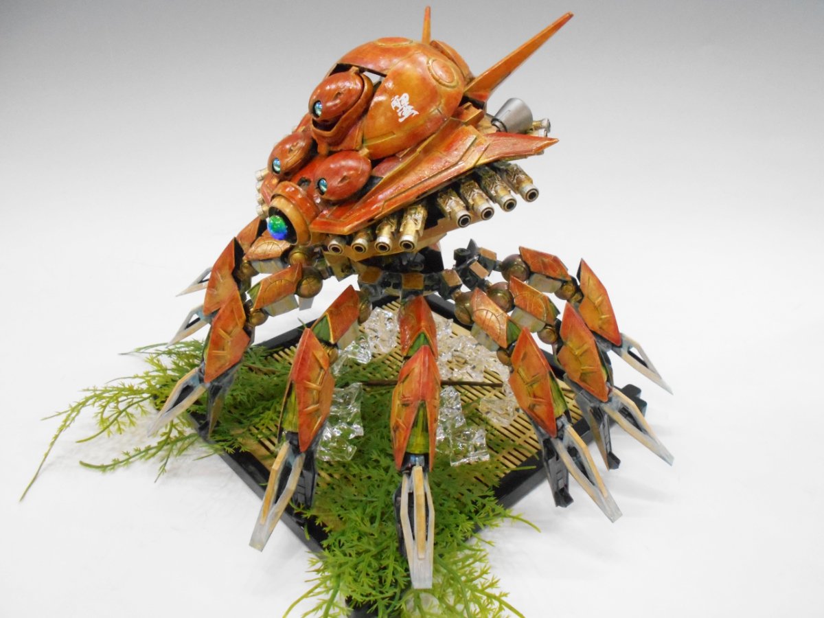 コメント:うすめたファレホで全体を塗装しています。ドライブラシはKカラーを使用。ビグザムイメージですが、カニです。