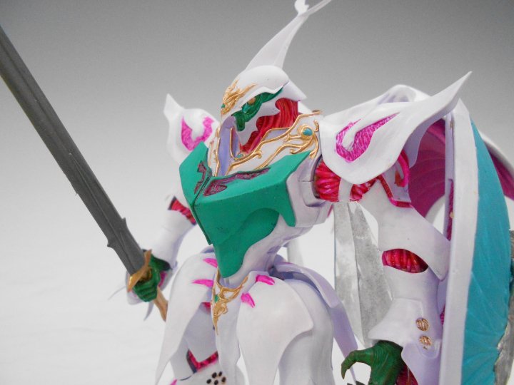 純白の装甲に蛍光マゼンタが眩く輝き、白き秘宝としての美しさを見事に再現。
