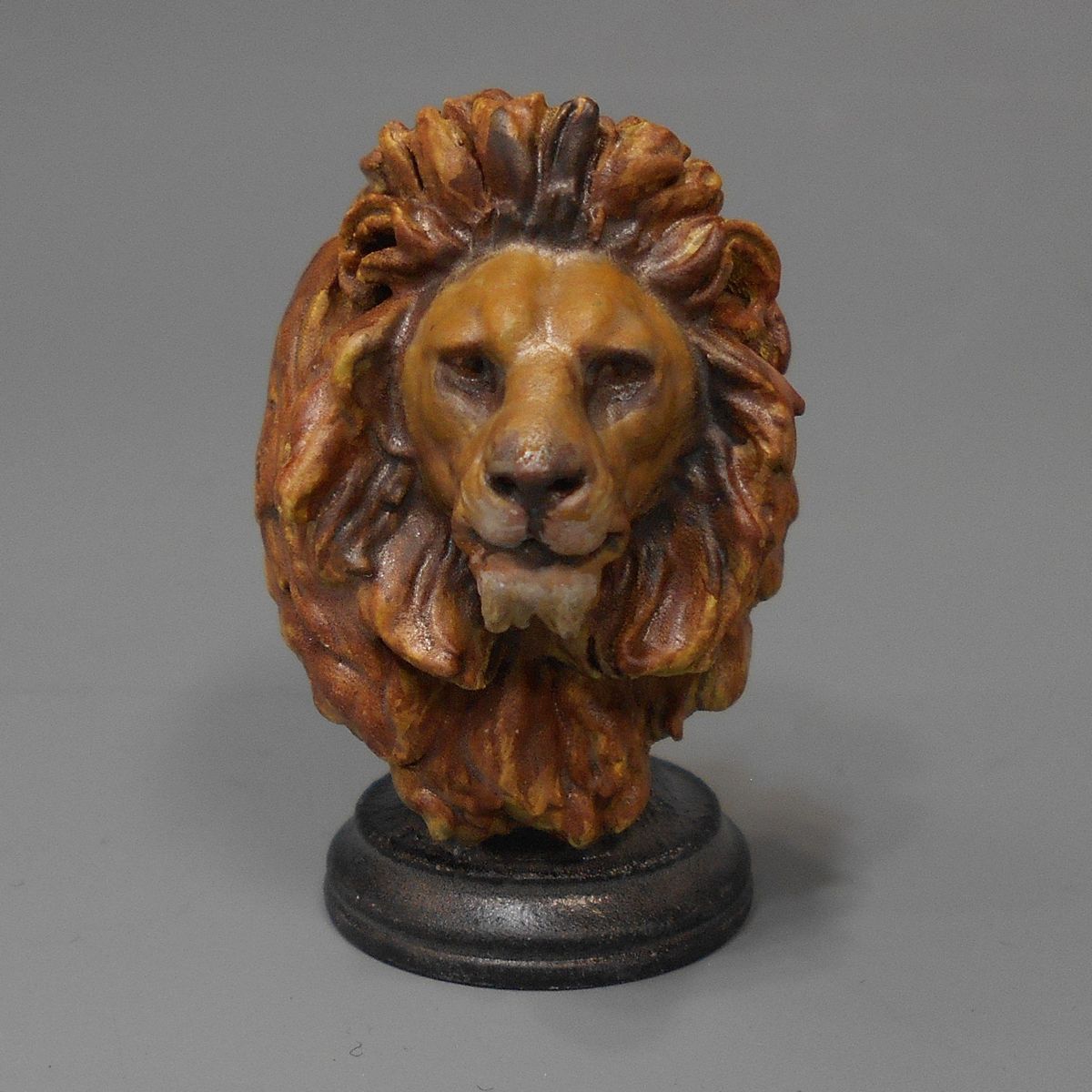 獣皮特有のしっとりとしたツヤ感と、絶妙な影の使い方でボリュームたっぷりの鬣を見事に表現されていらっしゃいます!また、目元に使われている少し暗めの色の効果で気品のある落ち着いた表情になっているのも印象的です。