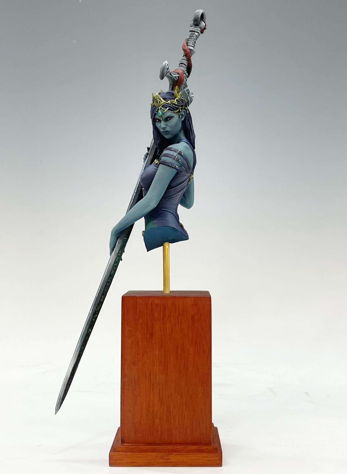 グラデーションの美しさは勿論、剣の重厚感、肌や布の質感など妖しくも美しい作品なった「lady of the lake」が見事、ミニチュアペイント胸像部門賞を獲得!
