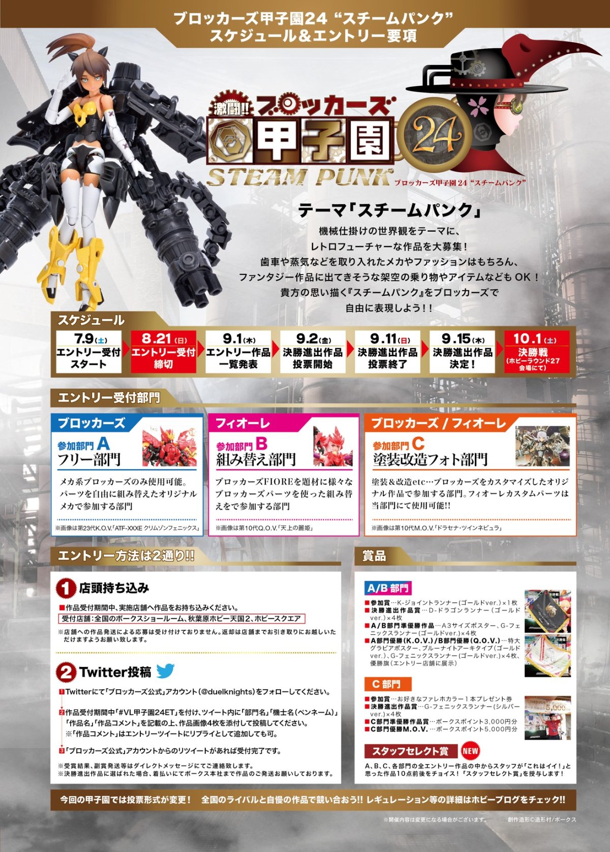 詳細はこちらの「ボークスホビーブログ」内の「激闘!! ブロッカーズ甲子園24"スチームパンク"開催概要! 新たな決戦方法にご注目!!」をご覧ください‼