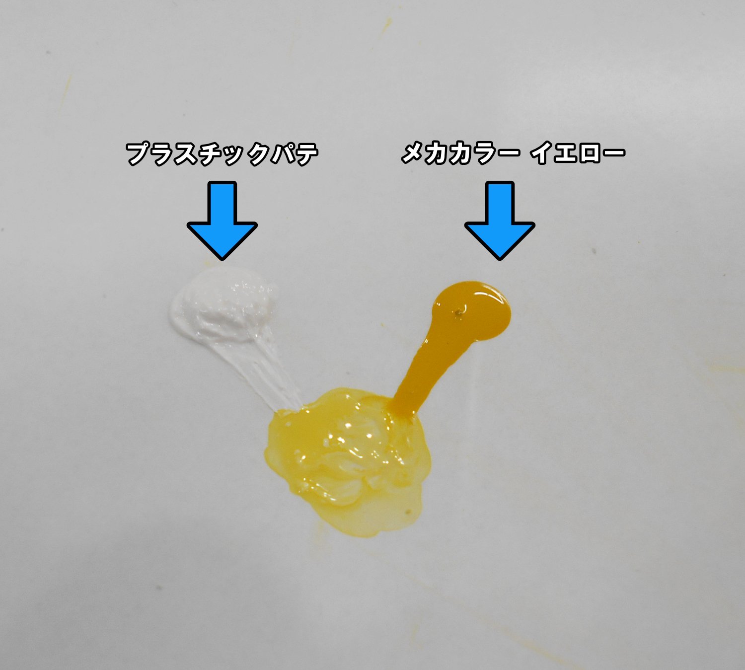 (※プラスチックパテが白いので、混色後は混ぜたファレホよりも若干明るい色になります。)