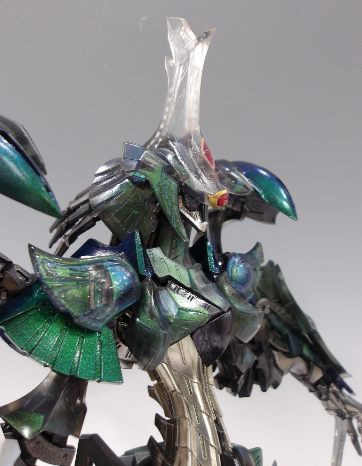 塗装はあえてクリアレジンの裏側を中心に行うことでレジン越しに偏光塗料が透けて見えるようにされています。