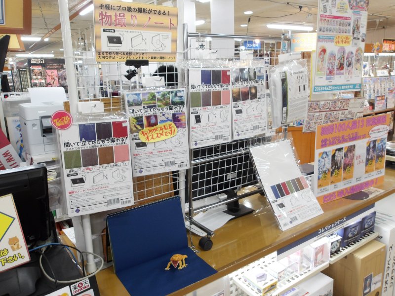 通常よりも大判の「物撮りスケブ」。艦船模型や大型のキャラクタープラモデルなど、幅のある模型にも対応しています。