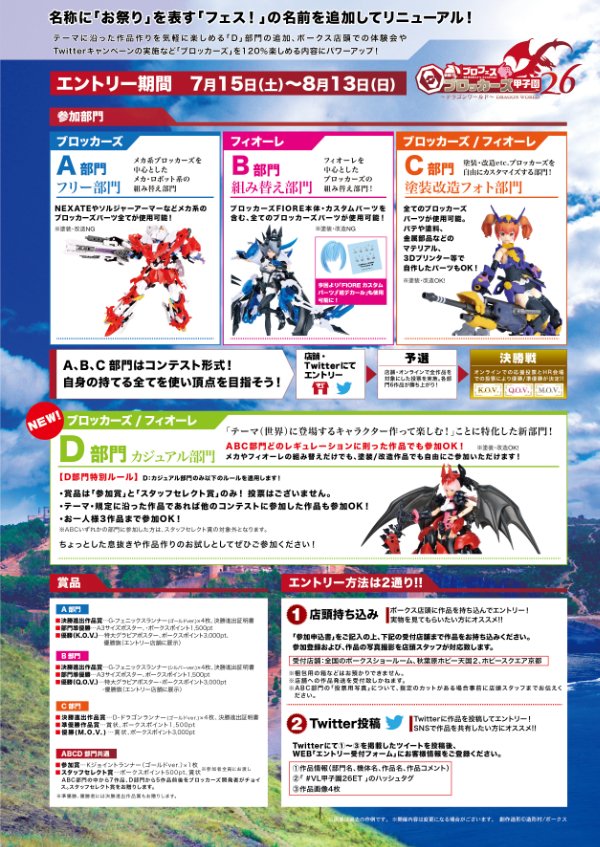 「この世界では伝承に語られる「ドラゴン」が海に大地に空にあらゆる環境に存在する。」という設定を踏まえ、ブロッカーズを使い、参加者の皆さんが己のアイディア、組み替えテクニックで競い合います!