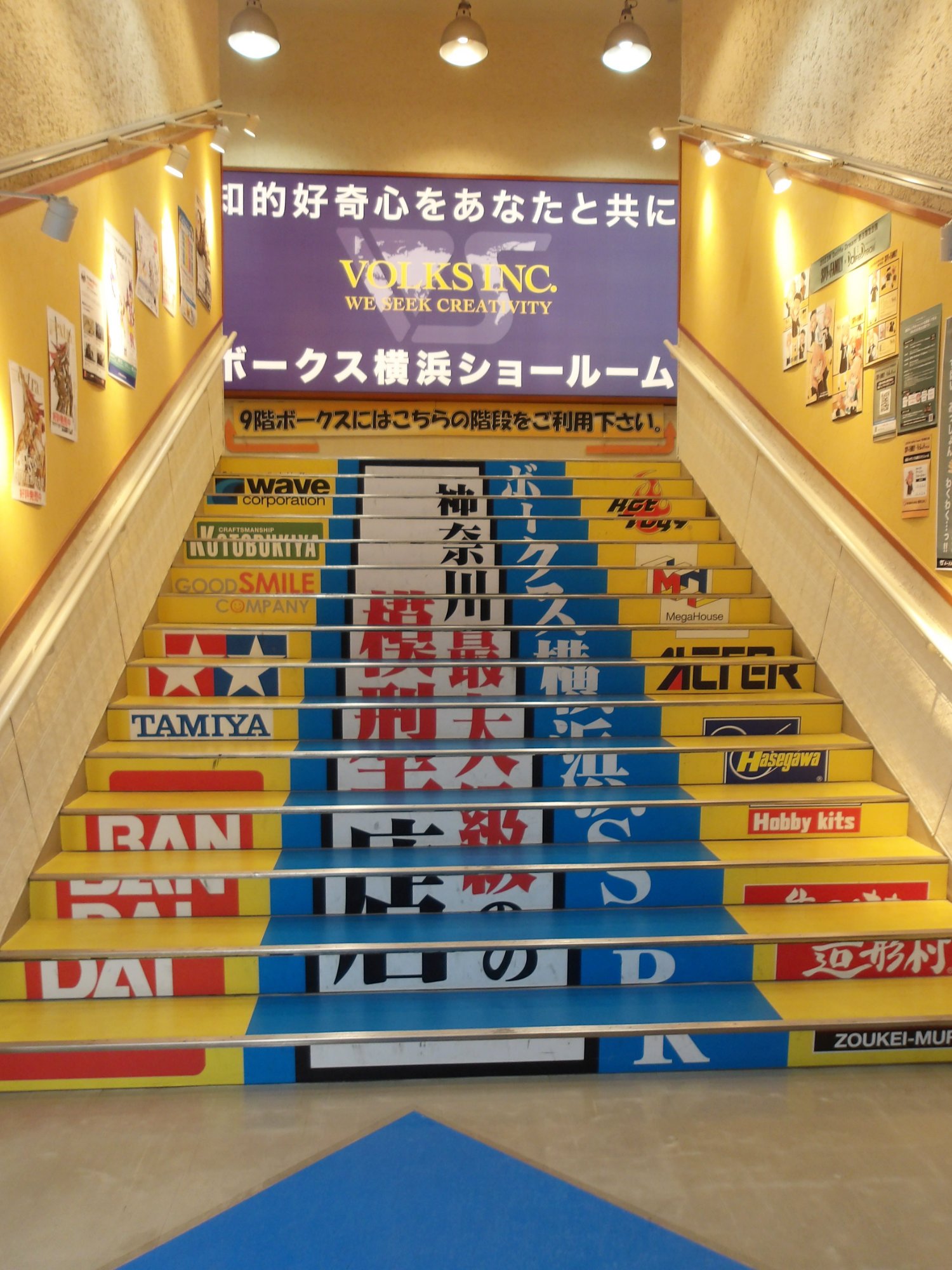 階段を上がりきると、ボークス横浜ショールームへ到着です。夢のあるホビーの世界を存分にお楽しみください!