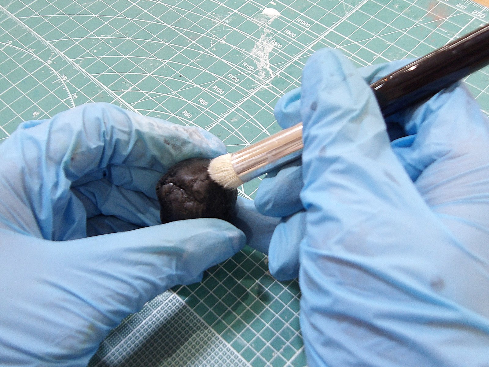 ファンド(石粉粘土)は乾燥後でも水分を吸収してしまうので、サーフェイサーで保護するのと塗装の下地作りを同時にやります!
