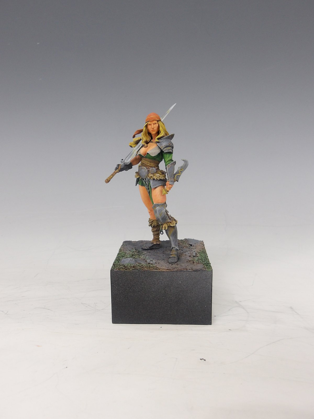 剣もNMM塗装を盛り込み重金属を感じさせる表現や布や表現など質感、ハイライトの塗り方が絶妙で綺麗な肌色表現など見応え抜群のミニチュアになっております!
