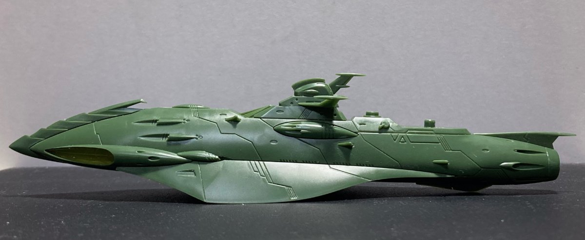 気になる題材ですが、ここはあえて戦車以外の物を取り上げてみようという事で緑一色のガミラス艦「1/1000 クリピテラ級航宙駆逐艦」を塗装しようと思いますので乞うご期待。