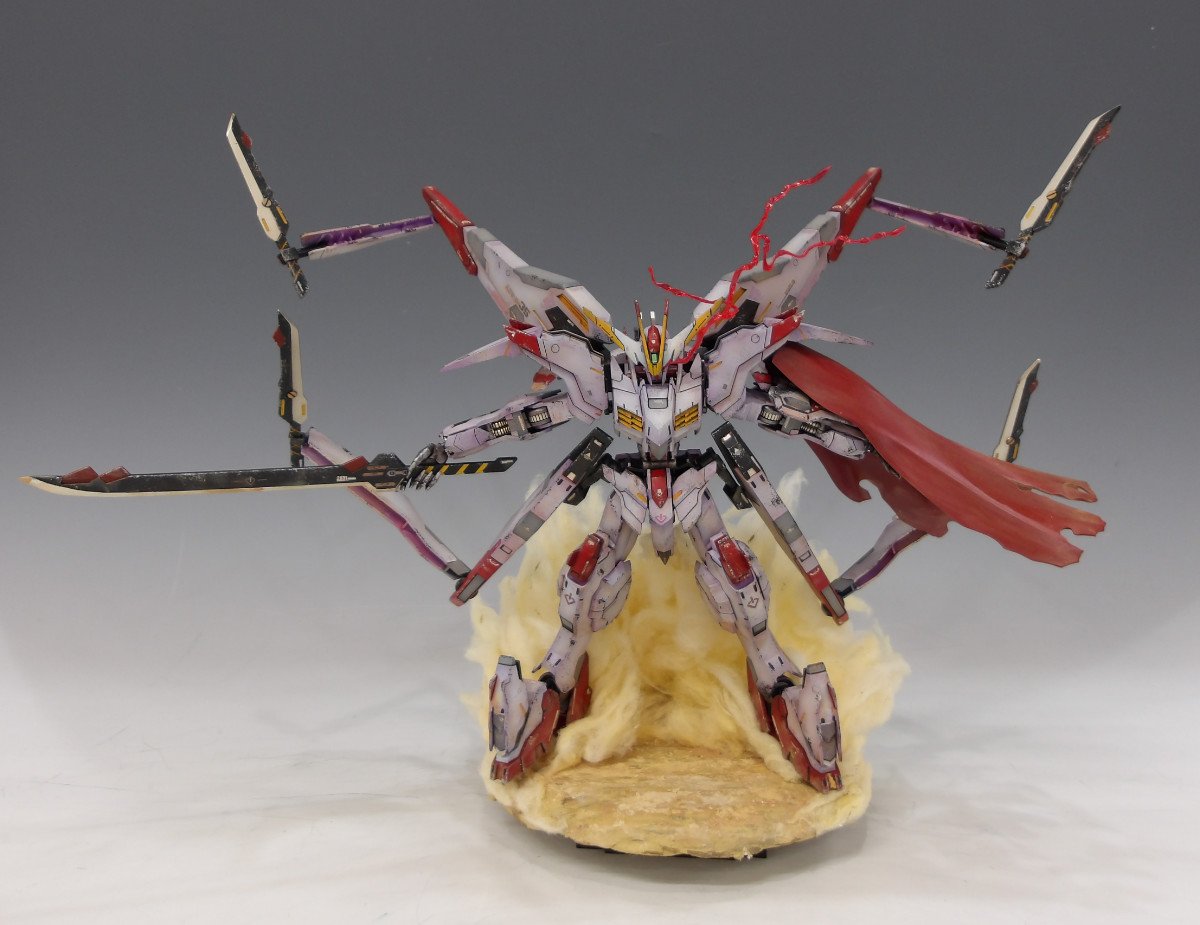 スタッフコメント:続いてもゆっきー様の作品!『ガンダム マルコシアス』になります。ガンダム端白星の厄災戦時の姿ですね!ウェザリングによる汚し表現も相まって厄災戦の臨場感が伝わって来ます!眼光の軌跡も再現されており作品に対するこだわりが感じられます!!MAをたった1体で葬り去る事ができる絶対的強者たる威厳を見よ!!