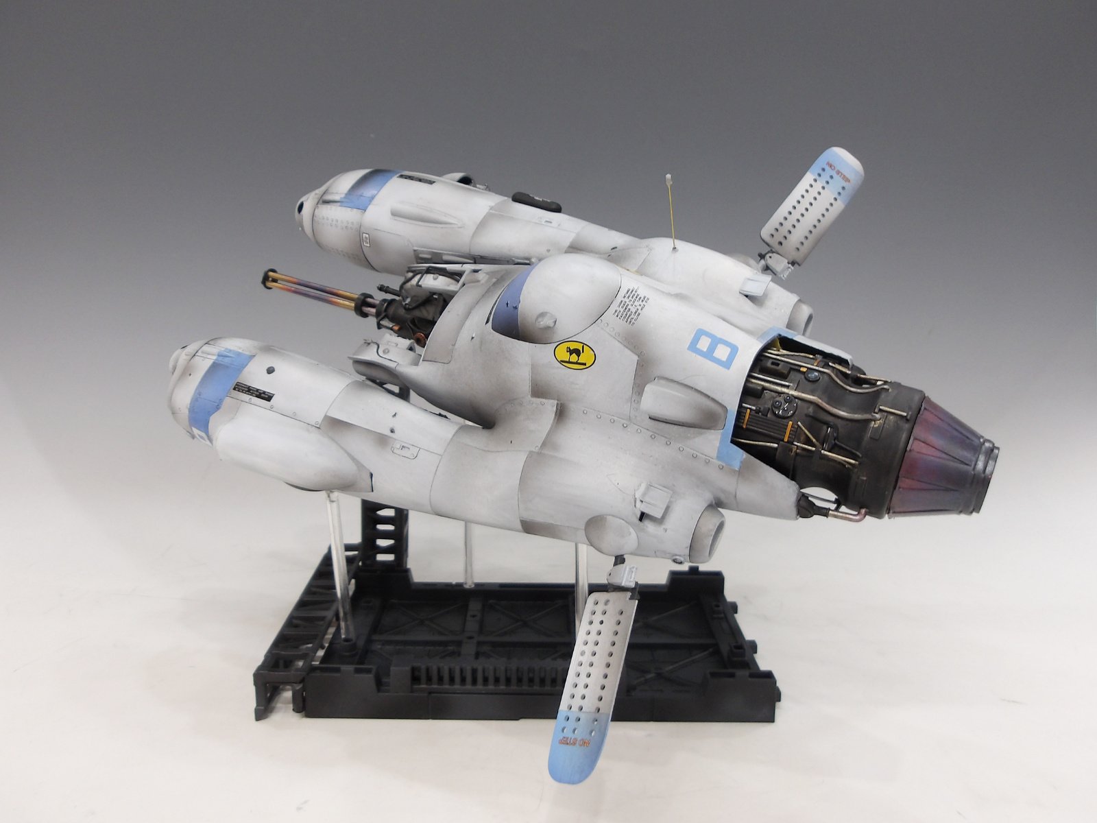 ガトリングやバーニア部の焼け表現も美しいグラデーションで艶消しを基本とする装甲とのメリハリが作品の魅力をより引き立てており、どの角度から見てもカッコイイ!と言える作品です!