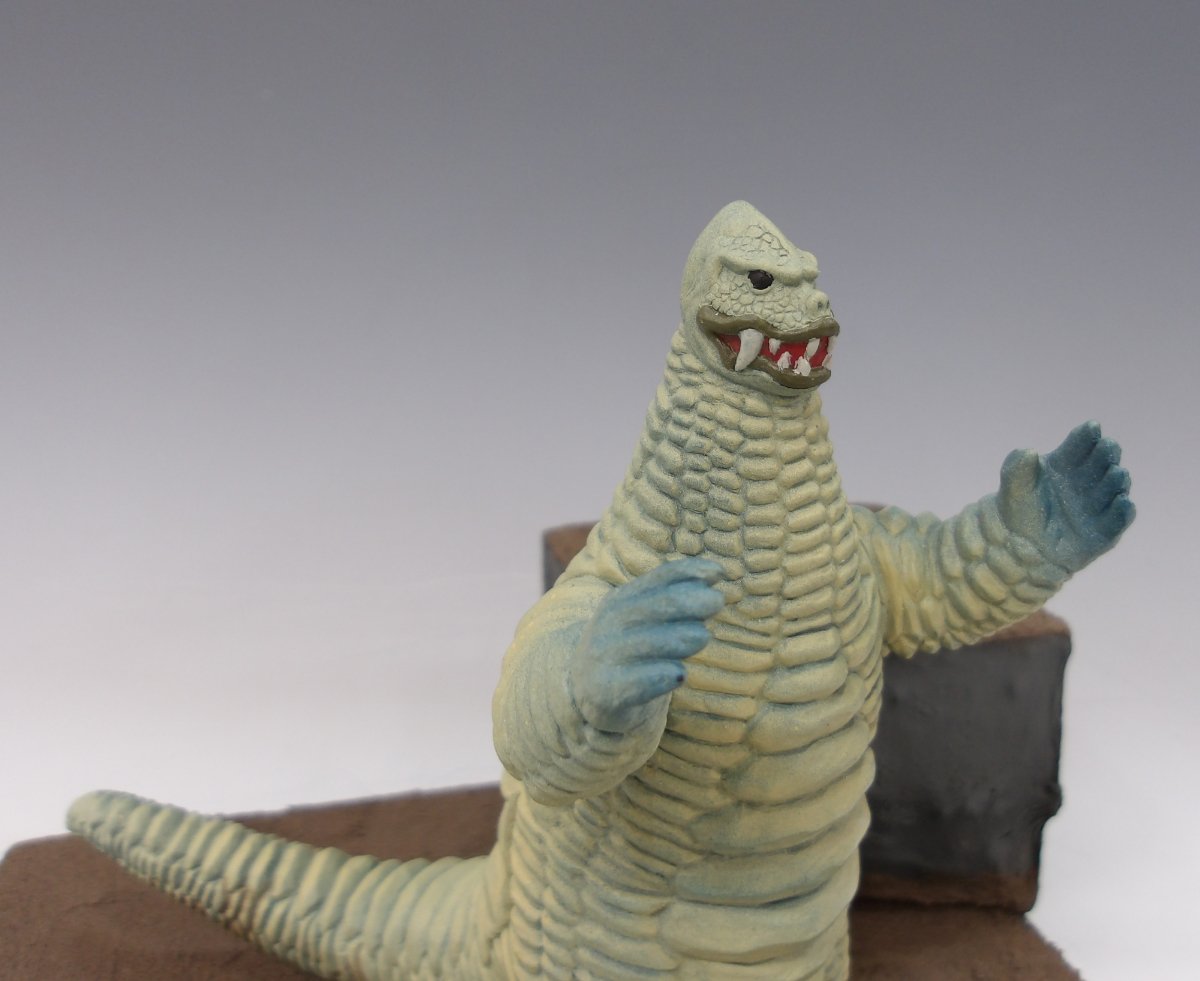 撮影用スーツの質感を出せるよう意識したというレッドキングはまさにテレビ画面越しに見たレッドキングそのもの!見事な質感表現で彩られた素晴らしい作品に仕上がっております。
