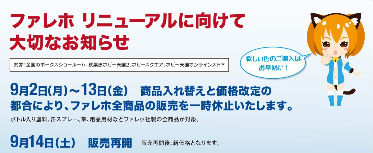商品入れ替えと価格改定の都合により一時販売を休止させていただいていたファレホですが、