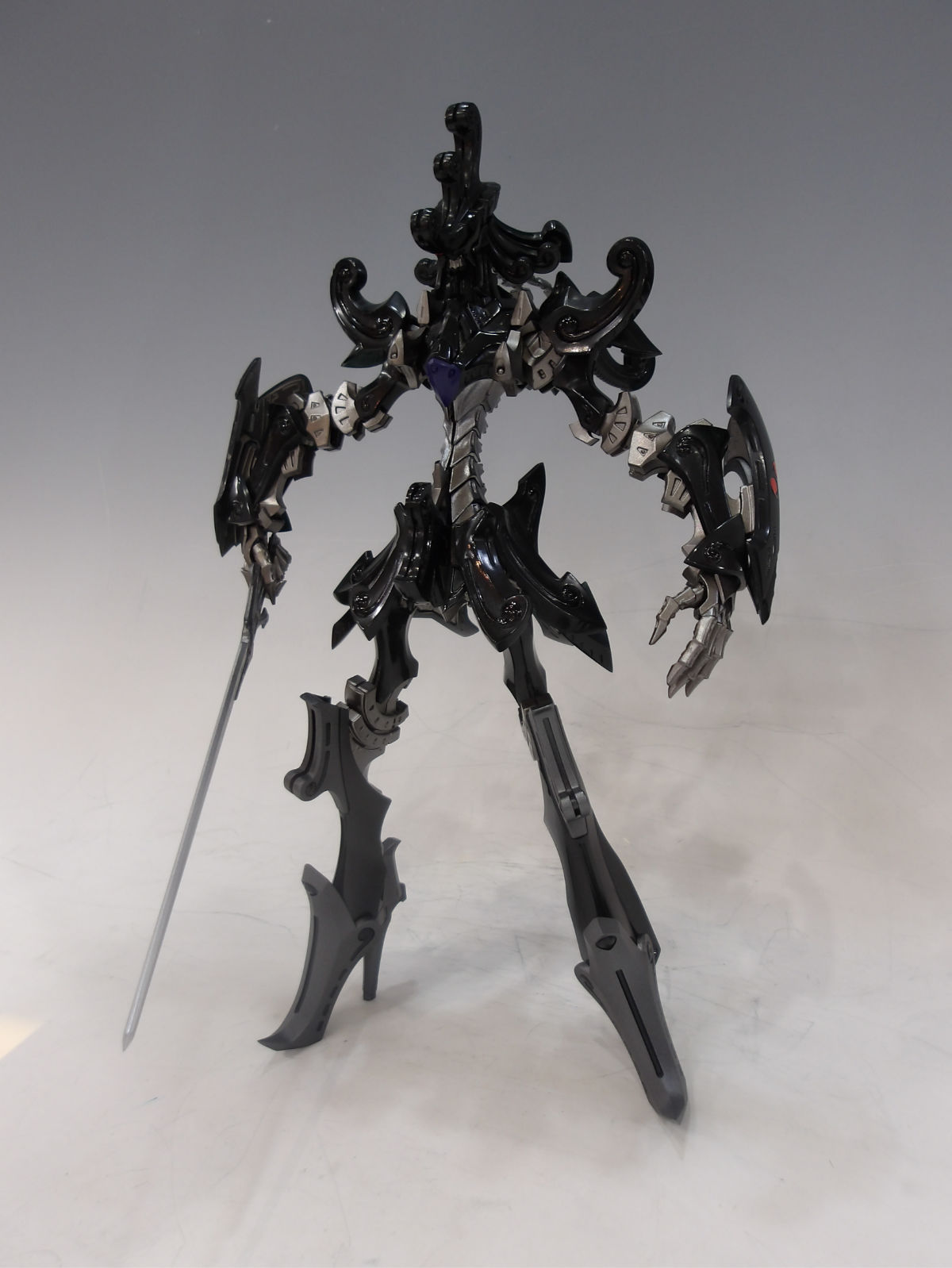 黒曜石のような半透明装甲を持つ設定のダッカス・ザ・ブラックナイト! クリアパーツによって内部フレームがうっすらと見える特性を活かした塗装表現になっております。