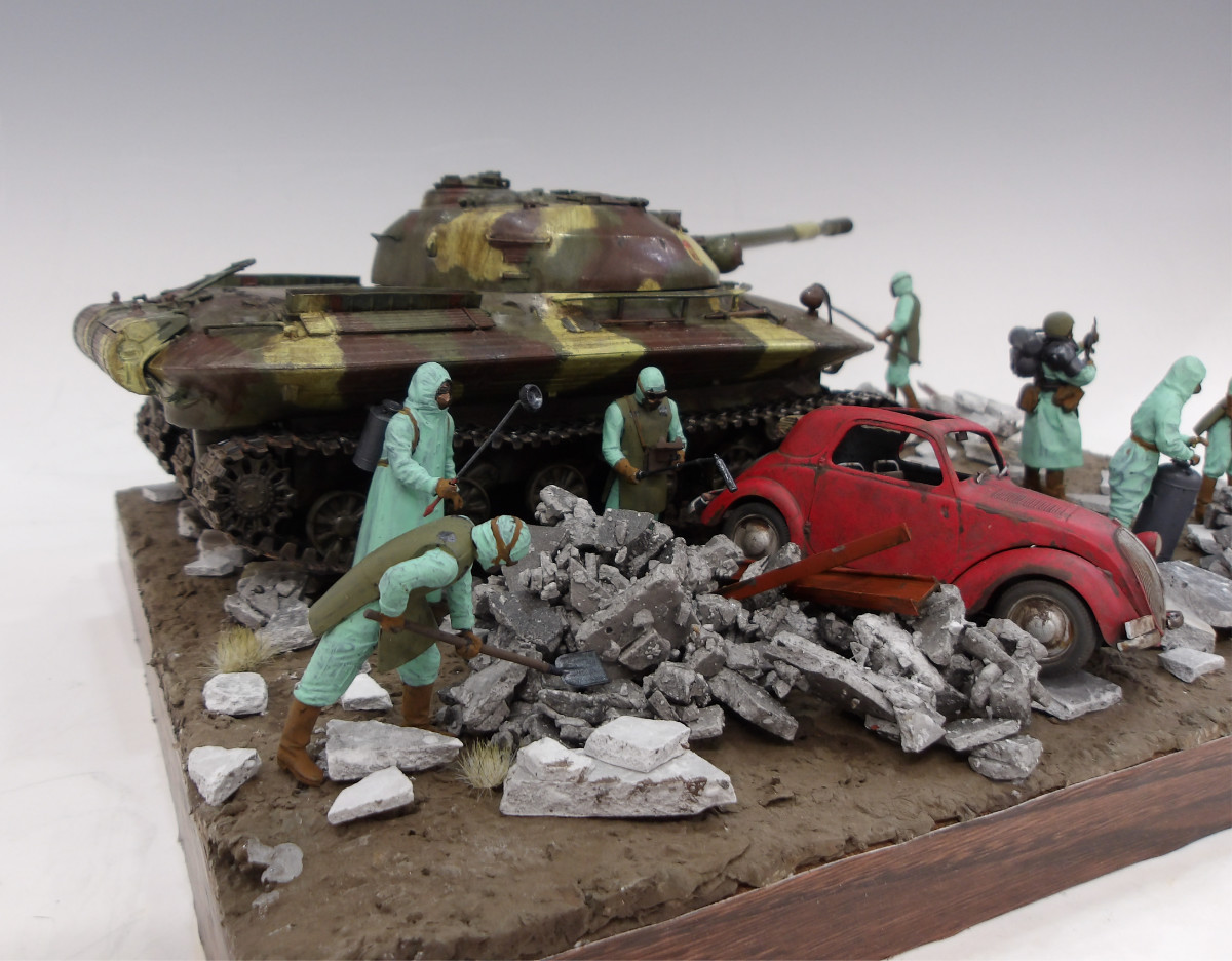 第二世界大戦後をイメージして製作されたとの事ですガレキを撤去する作業員や放射線の濃度計測する作業員、