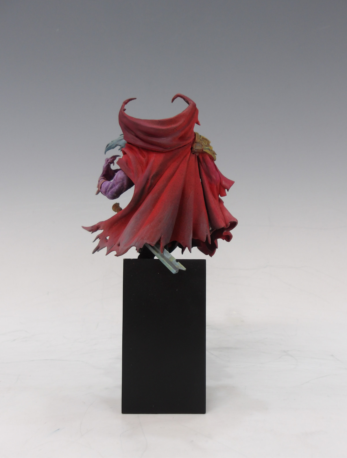 紫色の肌が特徴的ですよね!緑に輝く眼光によっておぞましさが伝わってきます!!口元に付いている血の表現も素晴らしいです!!マントの赤色もまさにバンパイアを象徴するような