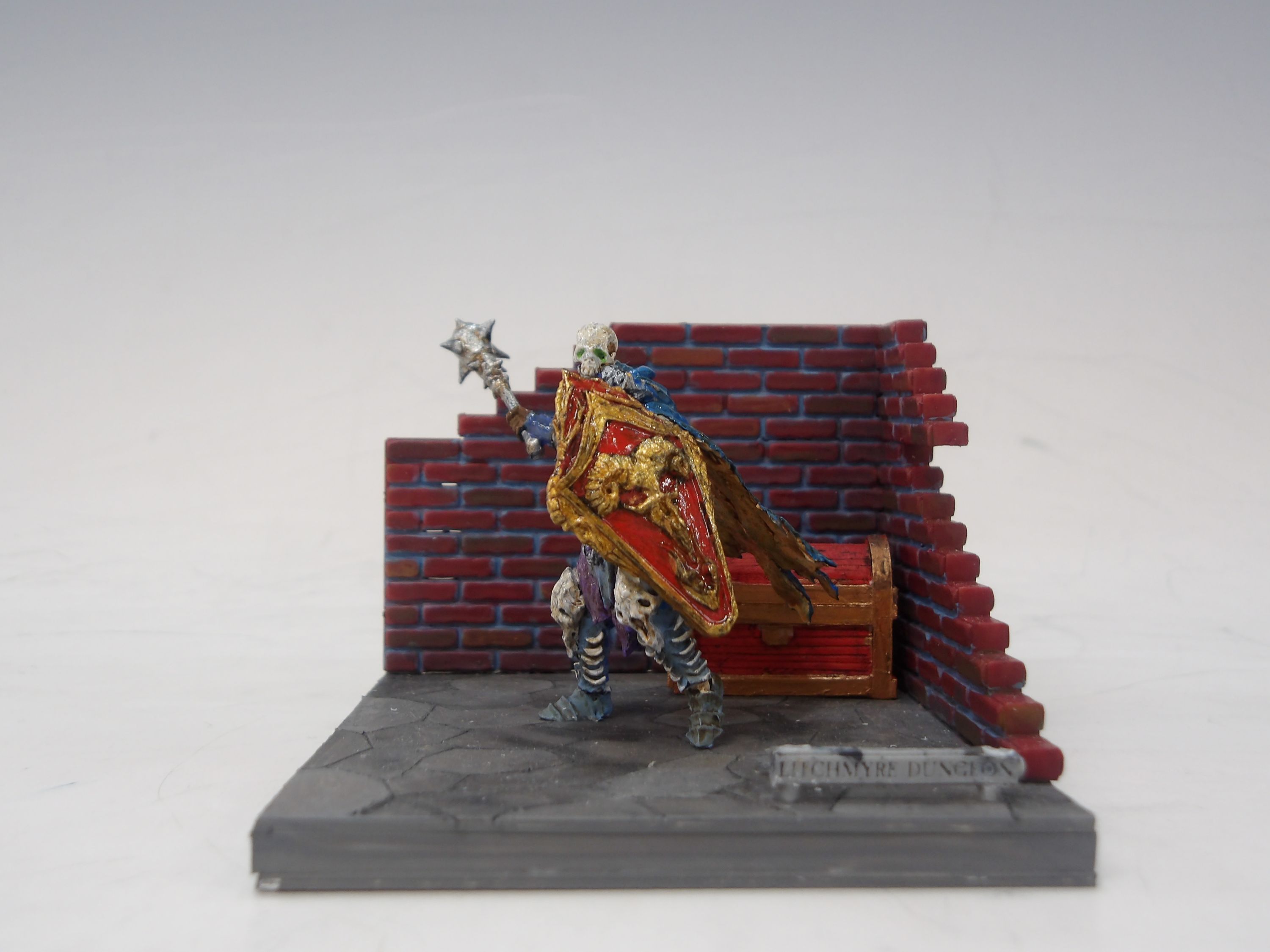 スタッフコメント:『スケルトン チャンピオン が あらわれた!』そんなテキストが見えてくるようです。本日最初の作品は「はる」様の「エンカウンター」です。ゼロテ社の人気ミニチュア「スケルトンチャンピオン」をウ〇ザードリィ風のミニジオラマにペイント!後ろのレンガ壁も相まって再現度がとても高いですね。