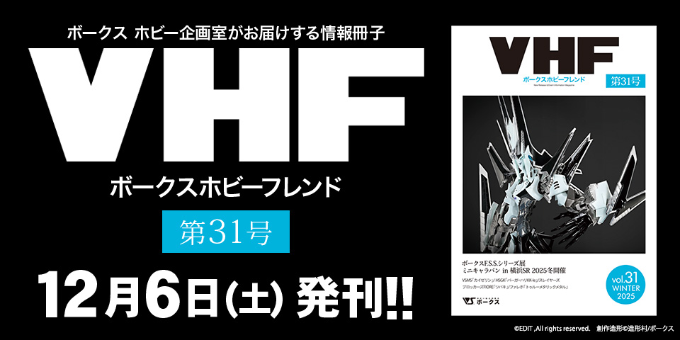 VSMS 1/100 ゲートシオンマーク3 リッタージェット・破烈の人形 (ホークヘッド)いよいよ発売! 2025.12.05 Hobby ボークス ホビーニュース [2025/12/05] 本メールは「ボークスオンラインストア」にて メールマガジンのご希望をいただいたお客様に送信しております ボークス公式 オンラインストア年末年始のご注文・お届けについて 年末年始の物量増加に伴う商品配送の遅延につきまして IMS限定版2種 オンラインストア発送開始日と住所変更期限のお知らせ VSMS「ダルマス」がいよいよ発売! 「VSMS 1/100 ゲートシオンマーク3 リッタージェット・破烈の人形 (ホークヘッド) 」の塗装には、F.S.S.カラーコレクションがおすすめ! 対応F.S.S.カラーコレクションを揃えて貴方だけの「ダルマス」を完成させよう!! 詳細は「対応F.S.S.カラーコレクション」をご覧ください。 おすすめ商品 配信解除について 「ホビー天国オンラインストア」にログインし、マイページの「会員情報の確認・編集」からメールマガジン配信項目の「希望しない」にチェックを入れてください。詳細はこちらからご確認ください。 お問い合わせ このメールアドレスは送信専用です。ご返信に回答できません。 メールマガジンの登録、変更につきましては、こちらをご参照ください。 その他お問い合わせは、お問い合わせフォームよりご連絡をお願いいたします。 → お問い合わせフォーム [発行]ボークス株式会社 622-0011 京都府南丹市園部町上木崎町年ノ森22-1 創作造形©造形村/ボークス 当メールに掲載の情報は、配信日時点のものであり、予告なく変更される場合や、在庫切れになることがございますので、あらかじめご了承ください。 メールとウェブサイトの記載が異なる場合、ウェブサイトの記載内容が優先されます。