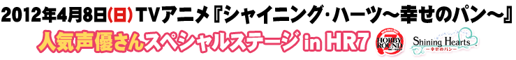テレビアニメ『シャイニング・ハーツ~幸せのパン~』の放送開始と、ボークスからのモエコレプラス『シャイニング』シリーズ商品化を記念して、アニメのヒロイン声優をお招きしての超豪華イベントが「ホビーラウンド7」会場内ステージで行われました。
